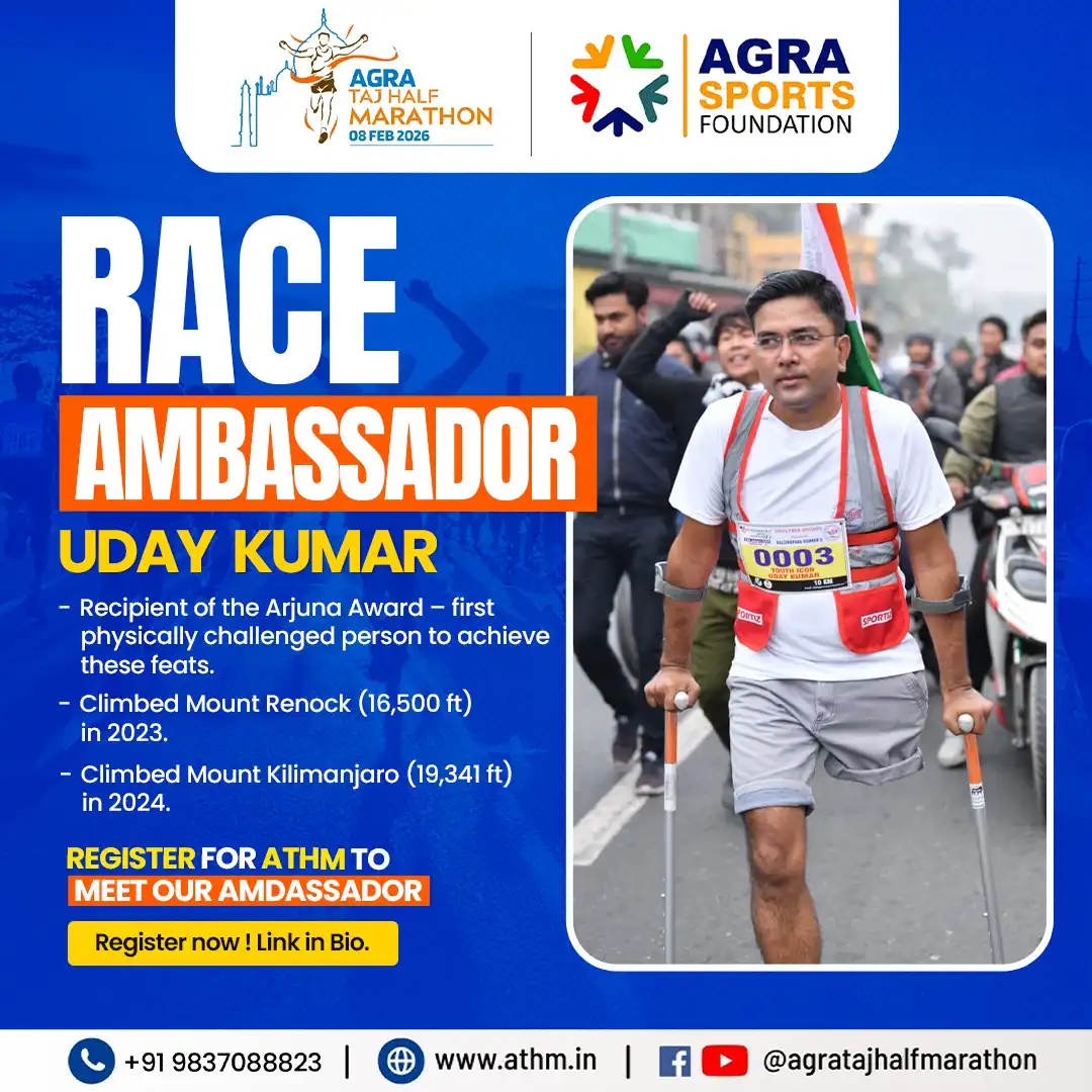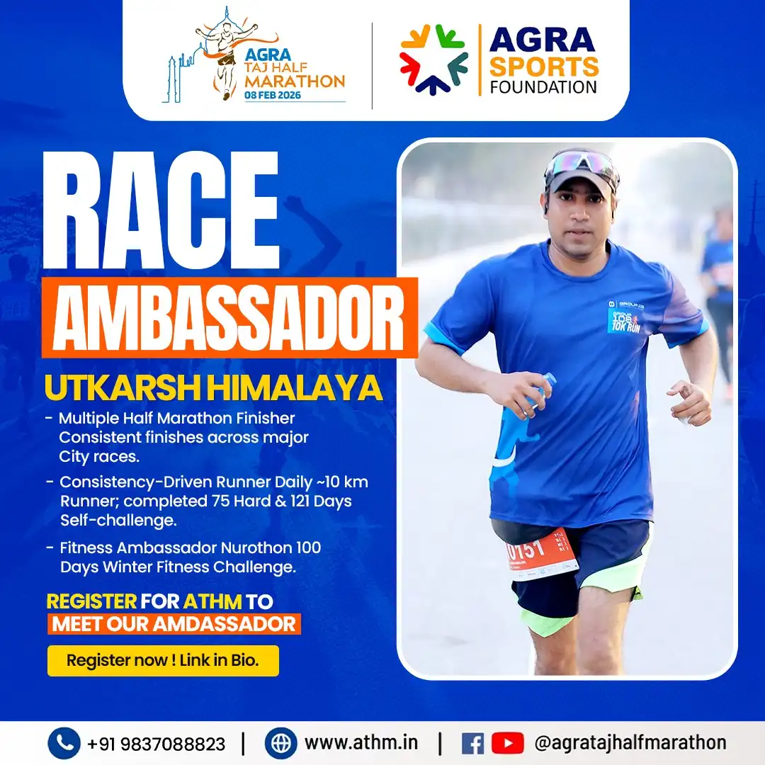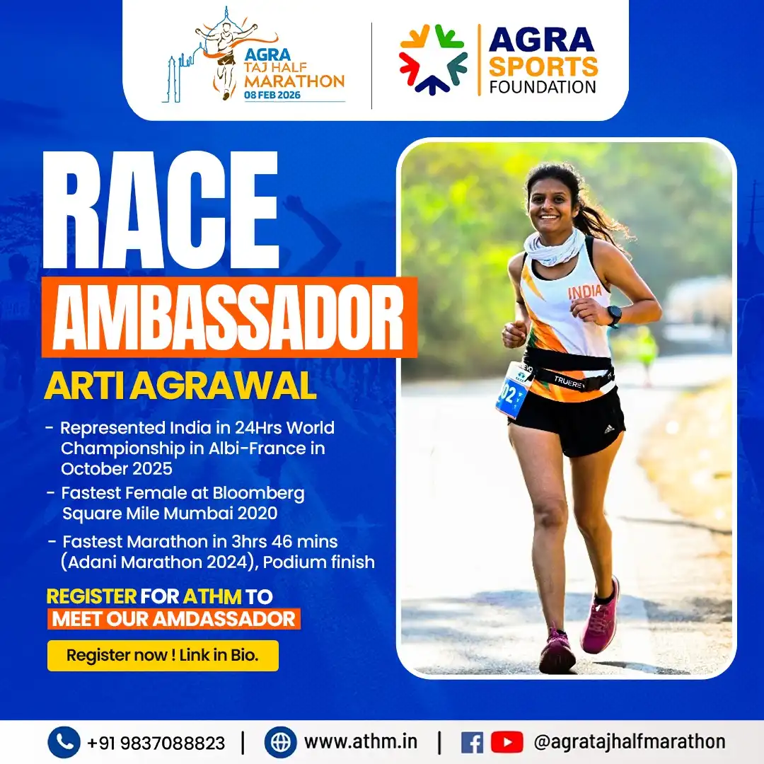- The registration fee paid is exclusively for your race category participation in the Agra Taj Half Marathon 2026. The registration fee is not, in part or full, payable for any offers/promotions/ discounts/goodies/race day tee, etc. These, if offered, will be by event sponsors/partners/ brands through the Event Promoter separately.