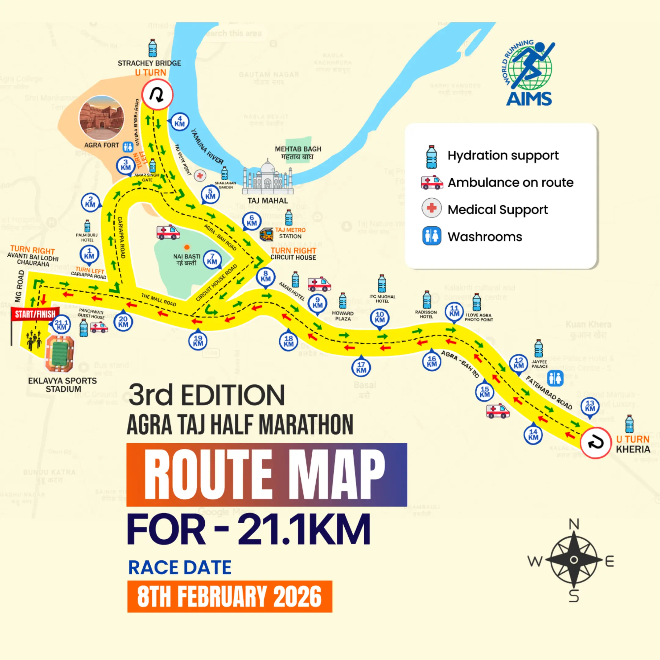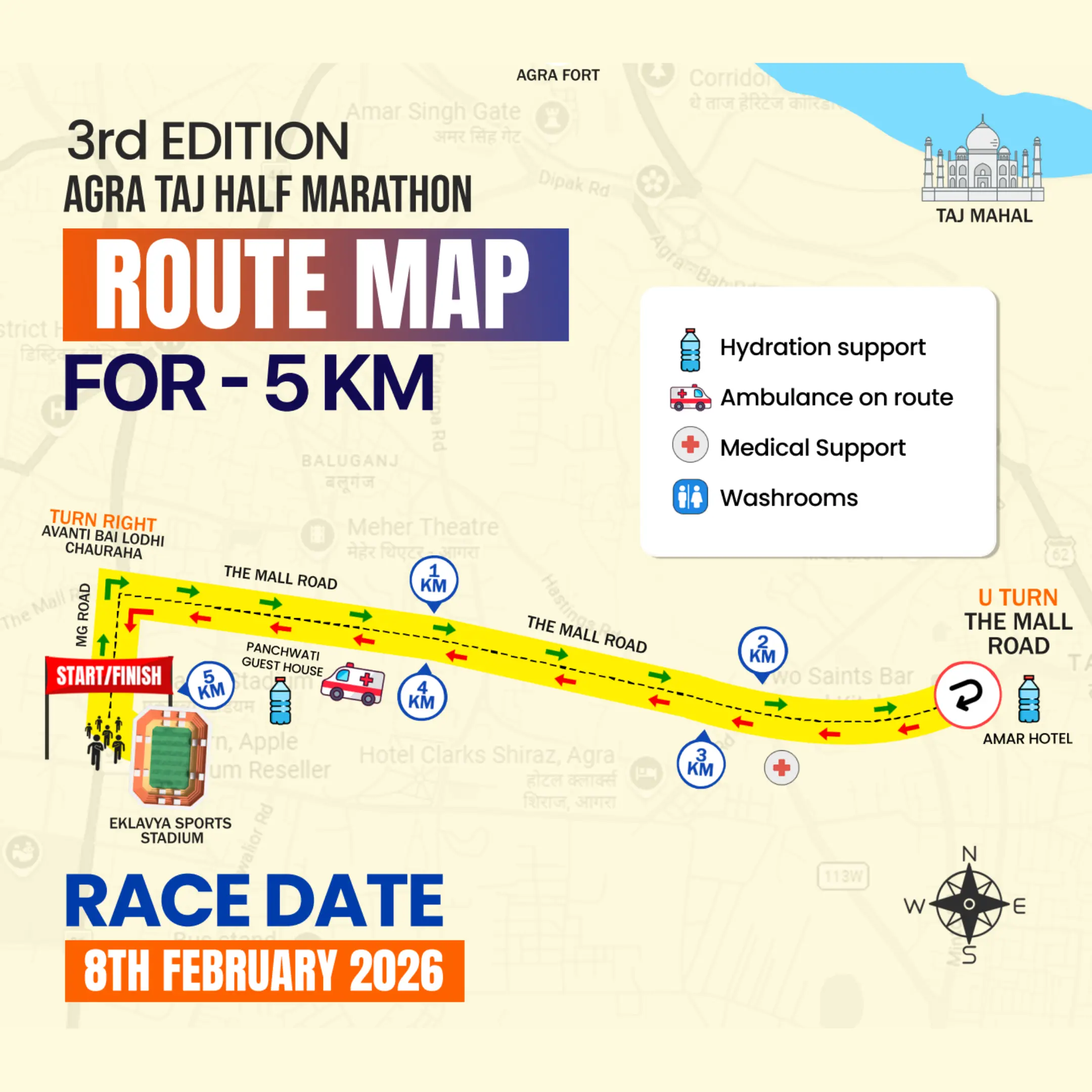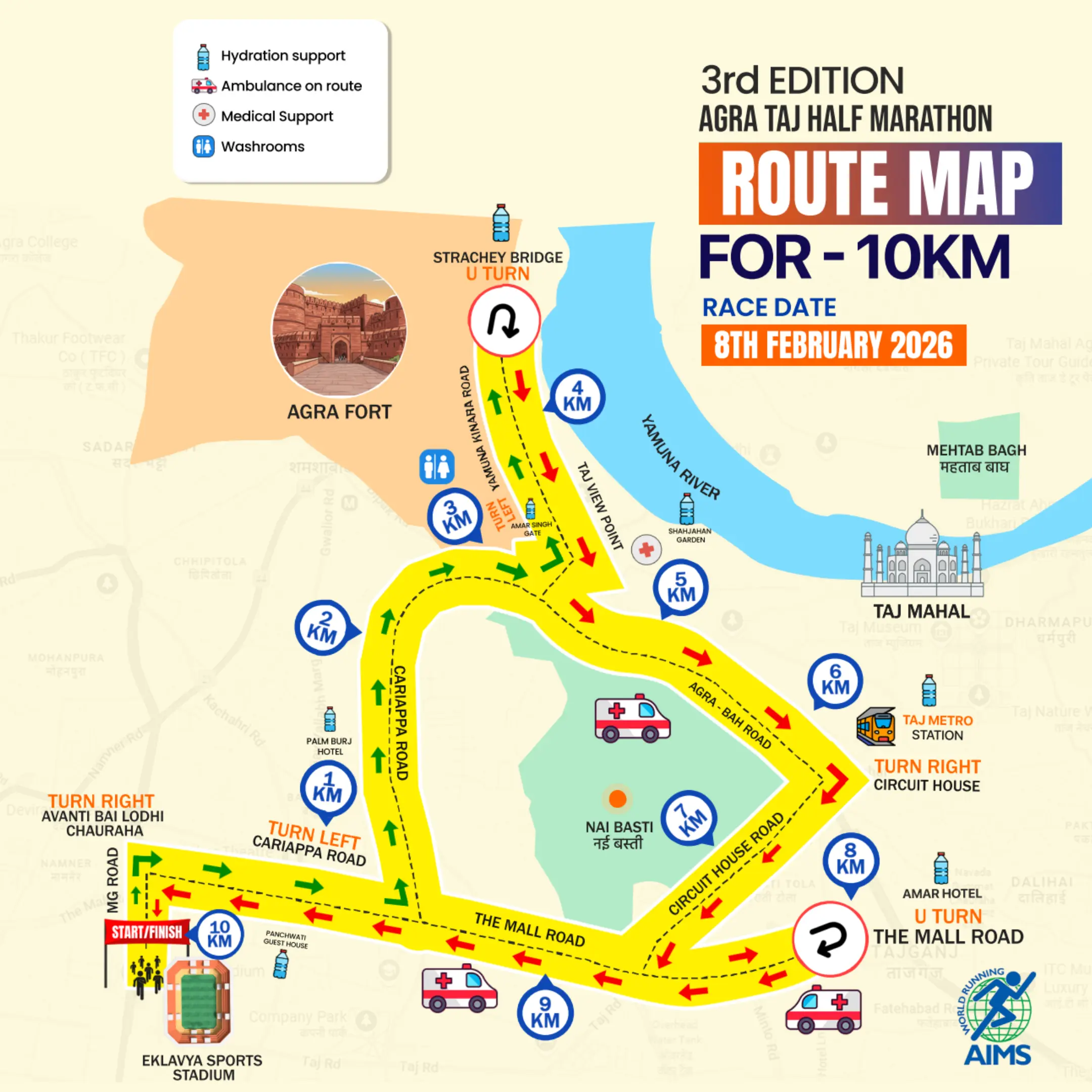 The Agra Fun Run race category is a participative, fun run. Being a non-timed category, finish timings of participants will not be captured; timing certificates will not be issued for this category.